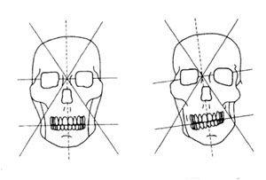 Man spricht hier auch vom „ Perlenketten“-Vergleich: Wird eine Perlenkette seitlich gedrückt, weicht sie nach vorn aus und wird spitz (Spitzfront). Mit der reduzierten X-Achsen- Entwicklung erscheint auch die Widerstandskraft reduziert. Statt standfest zu bleiben, wird die „Flucht nach vorn“ angetreten. Mit Oberkieferspitzfront bei Schmalkiefer hat man statt massiver Selbstbehauptung kompensatorisch lieber „eine spitze Zunge“, treibt einen Keil (nach vorn), wird also verbal aggressiv und bissig. Hier gilt jedoch die alte Weisheit: „Hunde, die bellen, beißen nicht!“